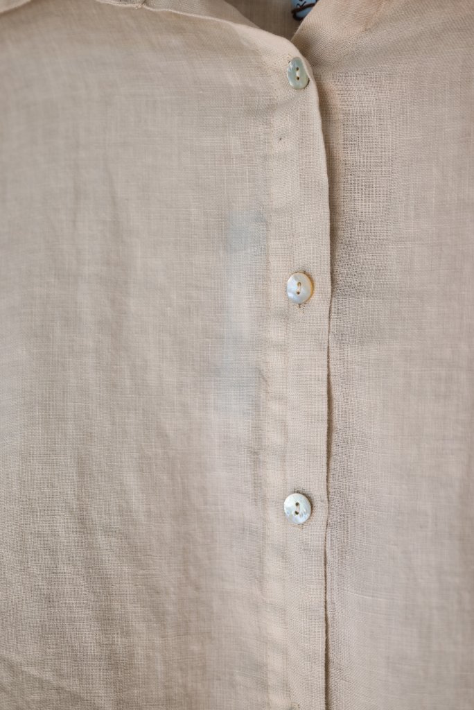 Härlig ljust beige linneblus med vida ärmar med slits. Kombinera med sköna linnebyxor i samma stil.