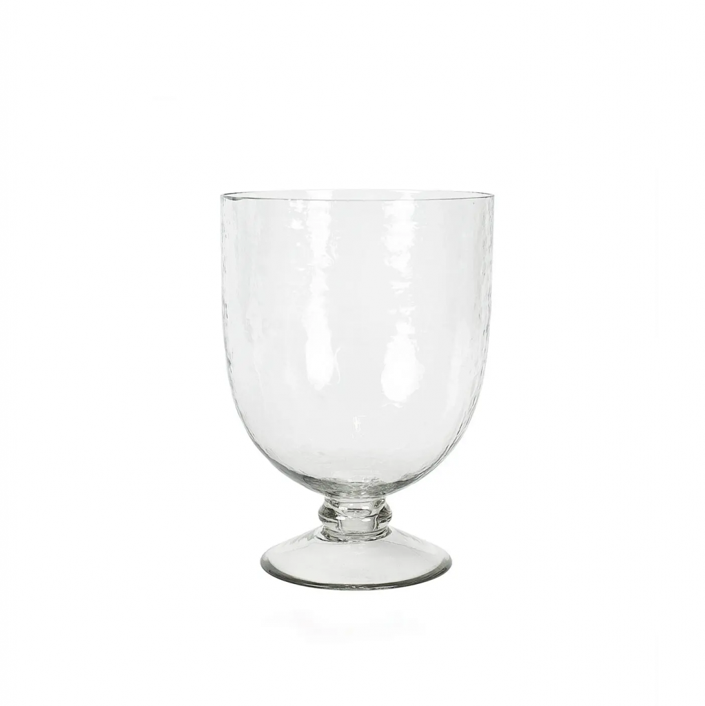 Skål på fot i hamrat glas, inspirerad av traditionella stormglas. Perfekt som både funktionell skål och dekorativt element.