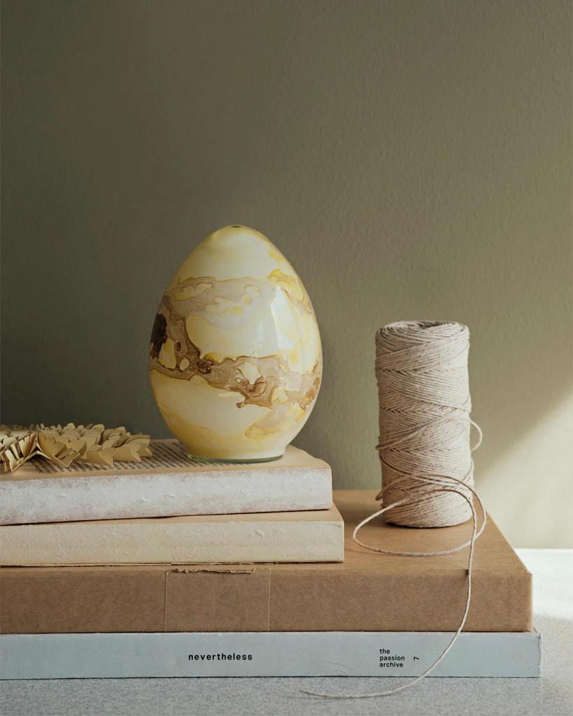 Ett glasägg i ljusgula nyanser
