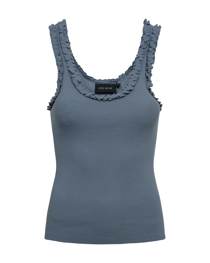 Blått skönt baslinne från copenhagen muse med ribbad struktur och fin kant upptill.